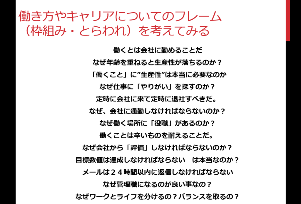 「働き方やキャリアについての『とらわれ』を考えてみてください」