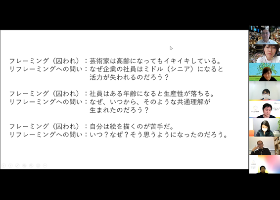 今あるとらわれを考え、その対極にあるリフレーミングしたものを思い描いたとき、冒頭、メンバーそれぞれが語った「創造性」という言葉から想起した以下の言葉に繋がっている感覚が共有できました。