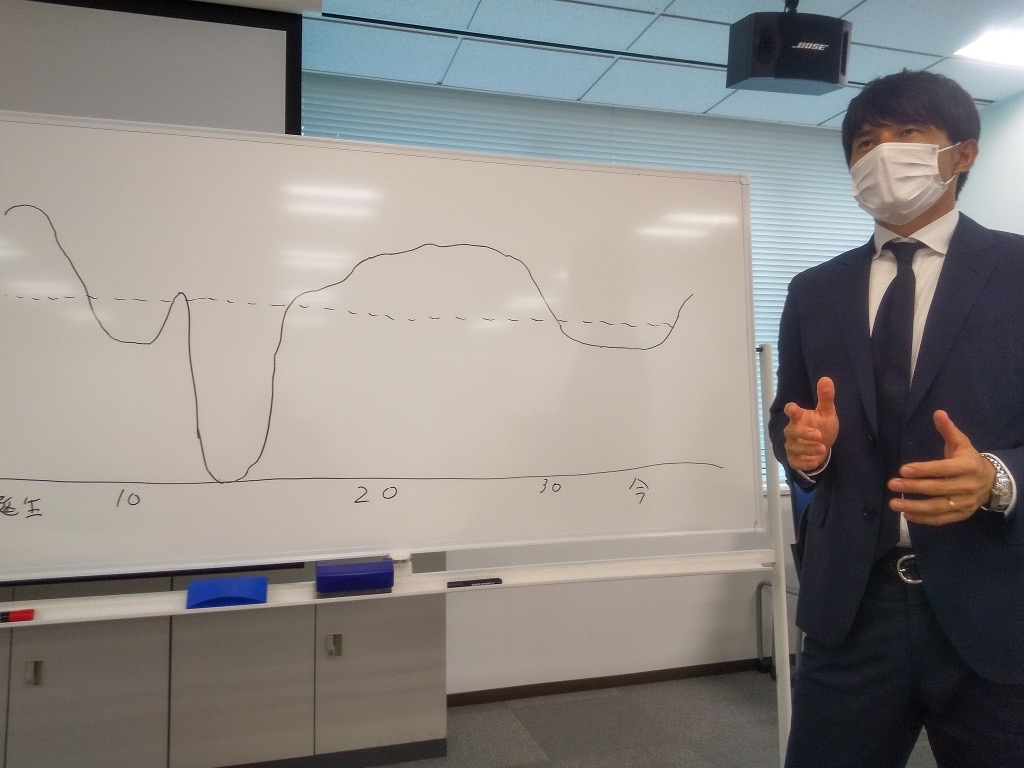 小林氏:そうなんです。で、ここ(最も下がっているところ)は高校生活が嫌すぎて……。主に部活ですが、人生がもう真っ暗でしたね。そこからまただんだん上がってきて、プロになれてからは基本的に右肩上がりです。