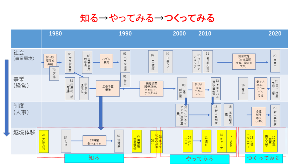 越境学習という言葉は10年くらい前から提唱されていましたが、当初は会社にいるだけでなく、会社の外でも学んだ方がいい、という認識が中心の考え方だったそうです。