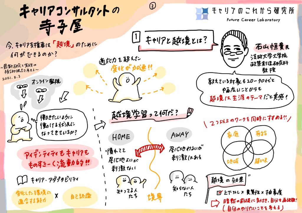 第2回目テーマは「今、キャリア支援者は『越境』のために何ができるのか? ~最新研究と実践の複合的視点で考える~」と題して2021年8月3日に実施しました。