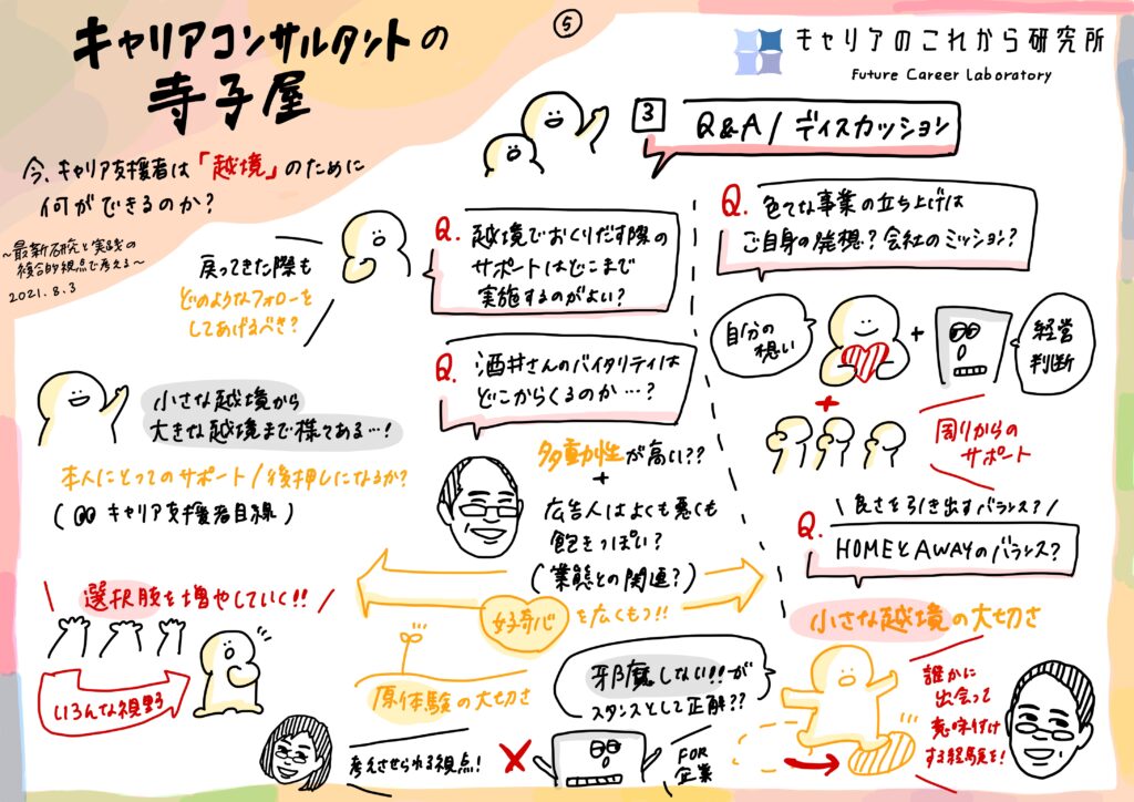 伴走者が手取り足取り支援しすぎると、学習につながらないのですが、越境者の話を誰かが関心を持って聴き、対話の中で本人が経験を意味づけることは重要です。これはキャリアコンサルタント的な役割ではないかと思います。」