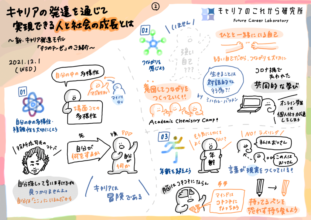 中原教授との対話を前編・中編でお届けし、後編では中原教授の言葉からインスピレーションを得た「これからのキャリア発達モデル」の研究会メンバーと参加者皆さんとの対話をお届けします。