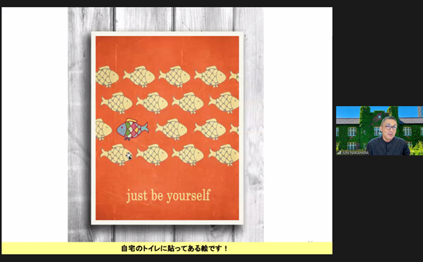 *中原教授の自己紹介時、ご自身の在り方を示す言葉を紹介してくれました。年齢を超えてどう在りたいか、にもつながるメッセージです