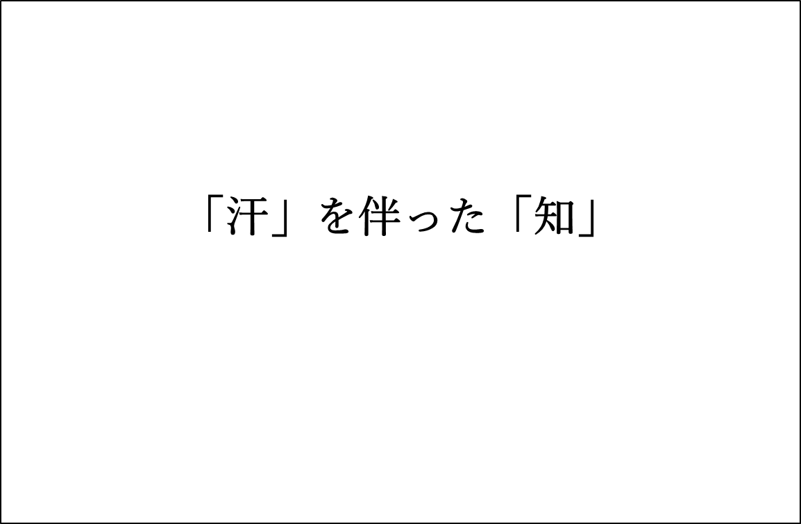 足で稼いで得た知識こそが本当の果実を得るには大切であり、それがまさに現場主義だということです。この言葉にヒントを得て、机上の空論ではなく、明日から仕事に使えるような研修や知識、要は実学に基づいた知識をここでは勉強するべきだという想いに至りました。