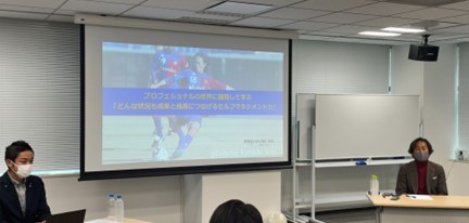 第1部はサッカー元日本代表の石川直宏さんをゲストにプロフェッショナルの世界におけるジョブクラフティングの可能性を考え、第2部ではジョブクラフティング研修の体験セッションを行いました。