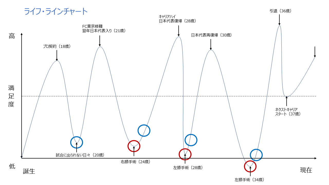 石川さんは、事前に書いてきてくれたライフラインチャートを使って、ご自身のキャリアをこう振り返っていました。