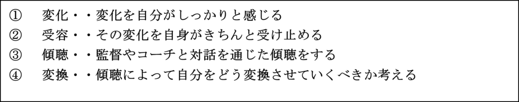 石川氏:監督によって求められ方は違いますが、その変化をまずは「あるがままに」受け入れることを大切にしています。受容する中で、コーチ・監督や周りの選手たちにしたいことを伝えたり、逆に傾聴したりして自分なりに変換して進化していく。