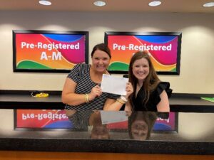 受付でも早速「Welcome!」という笑顔でお迎えしてもらいました。名前を伝えると、名札とグローバルディナーの参加チケット、書籍の割引券を渡されます。今年は節約されているのか、バッグやペンなどのノベルティや、印刷された大会情報はありませんでした。大会用のスマホアプリ導入も大きいのかもしれません。