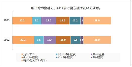 昨年同様に、10年以内に4割以上の方が現在の会社を退職する見通しを持っていることがわかりました。