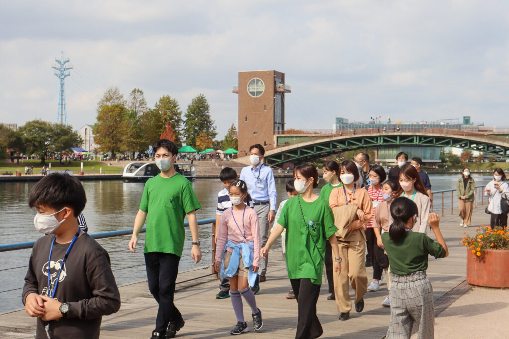 ワークショップ当日は、景観まちづくり課の職員さんから景観の概念について講義をしてもらったり、実際にみんなで駅前の公園を歩きながら景観づくりのポイントを教えてもらったりしました。そして、そこから考え出したアイデアをMinecraftで作りました。このワークショップは、応募者数が定員の10倍以上に達し、大変好評を博したワークショップでした。