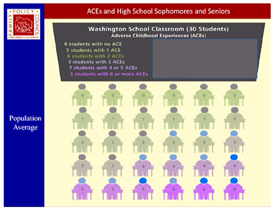 (※3つ以上のACEを持つ学生は、落第する比率が0の子に比べて2.5倍になる。)