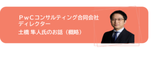 ゲストはPwCコンサルティング合同会社ディレクター土橋隼人氏です。ご講演とパネルディスカッション、質疑応答を通して、このテーマについて深めました。ぜひご覧ください。